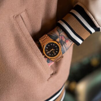 The case of this DayTrip is made of NASA-developed 316L stainless steel. The case is designed to withstand up to 100 metres (10 ATM) under water.